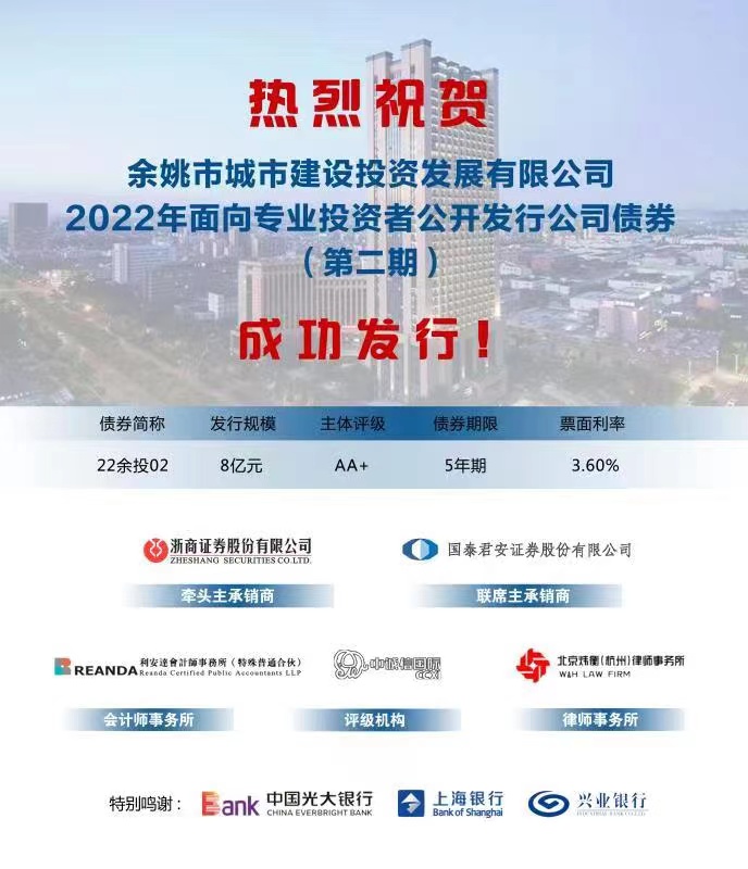 6月20日,集團下屬全資子公司市城投公司成功發行2022年度第二期公司債8億元,債券期限5年,票面利率3.6%。此次公司債的發行額度大、利率低,極大節約了融資的資金成本,也堅定了集團公司的市場公信力。