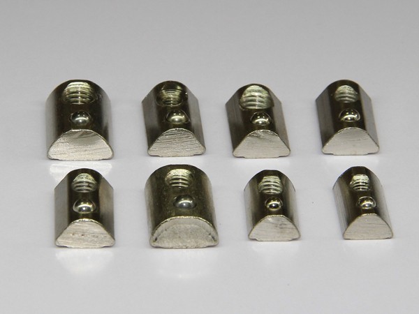 彈性螺母快用途:彈性螺母塊能被直接塞進(jìn)鋁型材槽坑中的任意裝配點(diǎn),它背部的彈簧鋼 珠能固定它的位置,使安裝十分簡單且 可靠,它是型材連接中使用比較多的配件之一。
