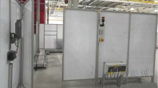 鋁型材防護(hù)圍欄:是在正產(chǎn)生產(chǎn)外設(shè)立防護(hù)措施,局部或全部建立鋁型材防護(hù)圍欄,以保證人員和設(shè)備安全,部分區(qū)域會(huì)安裝門或留出通道便于貨物進(jìn)出和人員檢修。