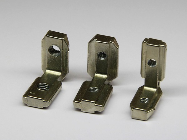 用途:用于兩根型材的直角連接,安裝時將其兩端分別插入型材槽坑內,將緊定螺釘鎖緊,根據(jù)型材的槽寬與連接方式請選用不同角槽連接件。