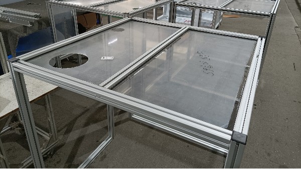 鋁型材防塵罩是在設(shè)備外圍建立安全范圍防護(hù)措施,以劃分安全范圍,阻隔人或物與設(shè)備直接接觸,起到安全警示作用,常和報警及斷電設(shè)備配套使用??蚣懿糠质褂娩X型材,配合絲網(wǎng)、亞克力、PC等各類板材,通過鋁型材配件安裝膨脹螺栓連接鋁型材立柱和地面。
