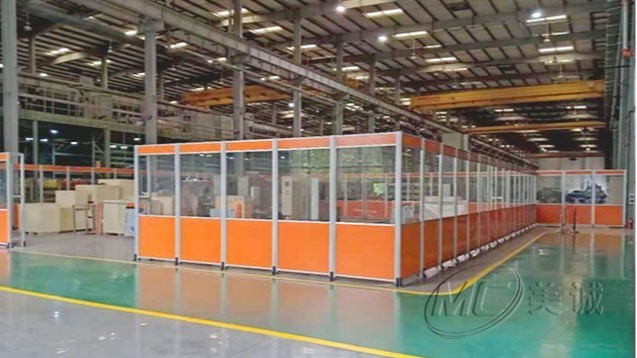 設備防護圍欄是在生產(chǎn)外設立防護措施,局部或全部建立鋁型材防護圍欄,以保證人員和設備安全,部分區(qū)域會安裝門或留出通道便于貨物進出和人員檢修。